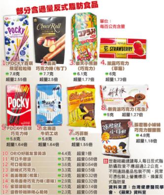 【沈能元、栗筱雯╱台北報導】 攝取過量反式脂肪易傷害心血管,世界衛生組織建議 每人每天攝取不應超過二點二公克, 但最新調查發現,國內至少有十七種市售零食,都含過量反式脂肪, 部分產品...