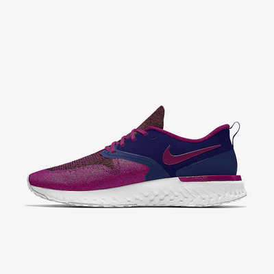 Nike Odyssey React Flyknit 2 By You 擁有能吸引你出門跑步的所有必備元素。巧妙結合輕量 Flyknit 結構和合成材質,提供充分支撐力。Nike React 緩震系統,提供柔軟有彈性的奔馳感,讓漫漫長路臣服於你的雙腳之下。使用多種色彩與個人化選項,打造專屬設計。