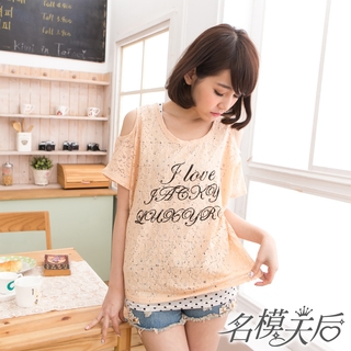 momo,momo購物台,momo購物網>【名模天后】快速到貨雅愛-挖洞露肩蕾絲造型兩件式上衣(粉膚)