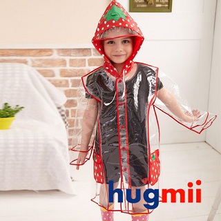 momo,momo購物台,momo購物網>【Hugmii】透明包邊長版造型兒童雨衣(草莓)