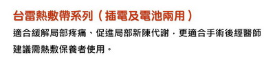醫療器材許可證所載品名:”台雷”熱敷帶(未滅菌)