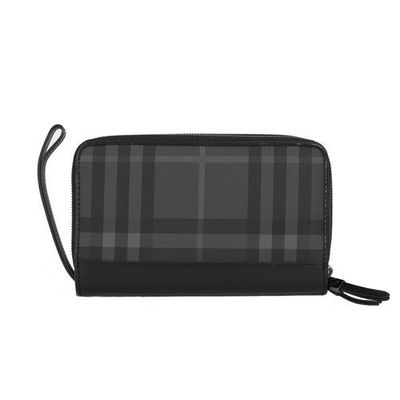 週年慶特會賣-【BURBERRY】皮革拼接塗層織物雙拉鍊男用手拿包(黑灰) 評價