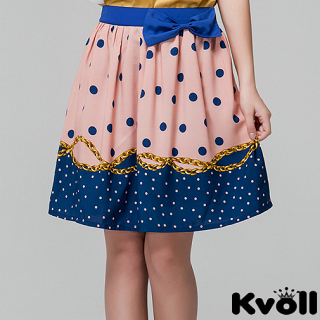 momo購物-【KVOLL大尺碼】粉色撞色波點高腰蝴蝶短裙