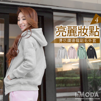好物推薦-0216新品 亮麗妝點~燙仿鑽連帽口袋設計刷毛外套.4色 推薦