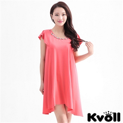【KVOLL中大尺碼】紅色彩色釘珠荷葉袖連衣裙IO-2185產品的圖文皆引用自東森購物,圖文所有權皆為原所有權人所有,價格和內容如有變化依東森購物網為主