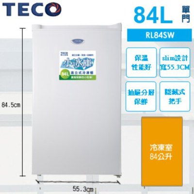 【發燒好康】TECO 東元 84L 直立式冷凍櫃 RL84SW-周年慶