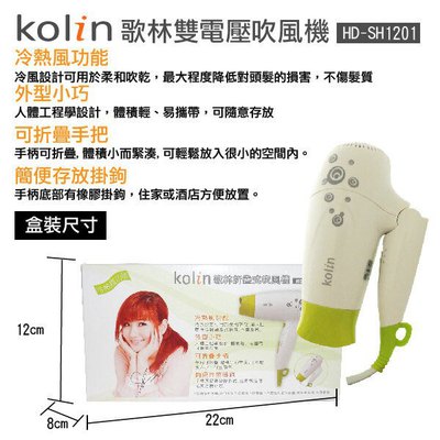 【折扣專區】【威利家電】【刷卡分期零利率+免運費】Kolin歌林折疊式吹風機HD-SH1201-特價限定商品