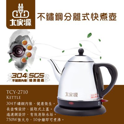 【最新精品推薦】【威利家電】【刷卡分期0利率+免運】大家源 304不鏽鋼分離式快煮壺-電茶壺 TCY-2710-3C那買最划算