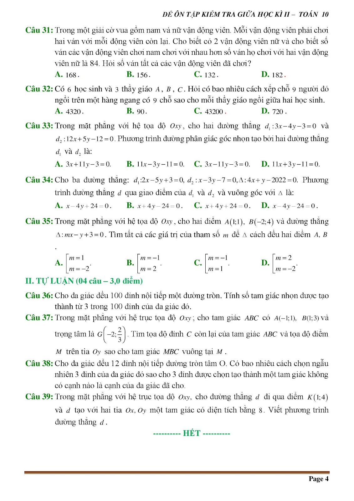1. Ma trận đề thi giữa kì 2 môn toán 10