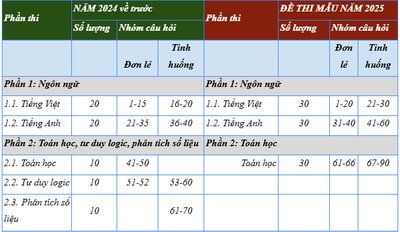 - Phần thi đã được điều chỉnh từ phần Logic – Phân tích số liệu (trước đây thuộc Phần 2) và Giải quyết vấn đề. Số lượng câu hỏi Logic – Phân tích số liệu đã giảm từ 20 xuống còn 12 câu.