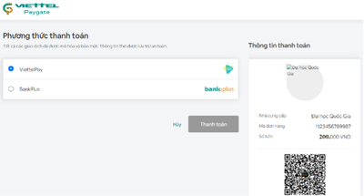 - Nộp lệ phí thi qua cổng thanh toán: Viettel Pay hoặc chuyển khoản ngân hàng