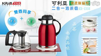 【本日刷卡獨享好康】【KRIA可利亞】二合一泡茶機-電水壺-快煮壺(KR-1318) 商品熱銷