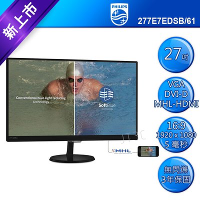 【非逛不可】【滿3千15%回饋】PHILIPS 飛利浦 277E7EDSB-61 27吋(型) LCD 顯示器※回饋最高2000點-購買刷卡折扣
