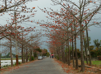 白河木棉花道 白河林初埤附近,一條田間產業道路兩旁,木棉樹間距小又筆直排列,樹冠交錯而成傘蓋,形成一道火紅的木棉花隧道,成為近年來攝影者趨之若鶩的新景點。這次趁清明節回台中掃墓之便,順路彎過去拍...
