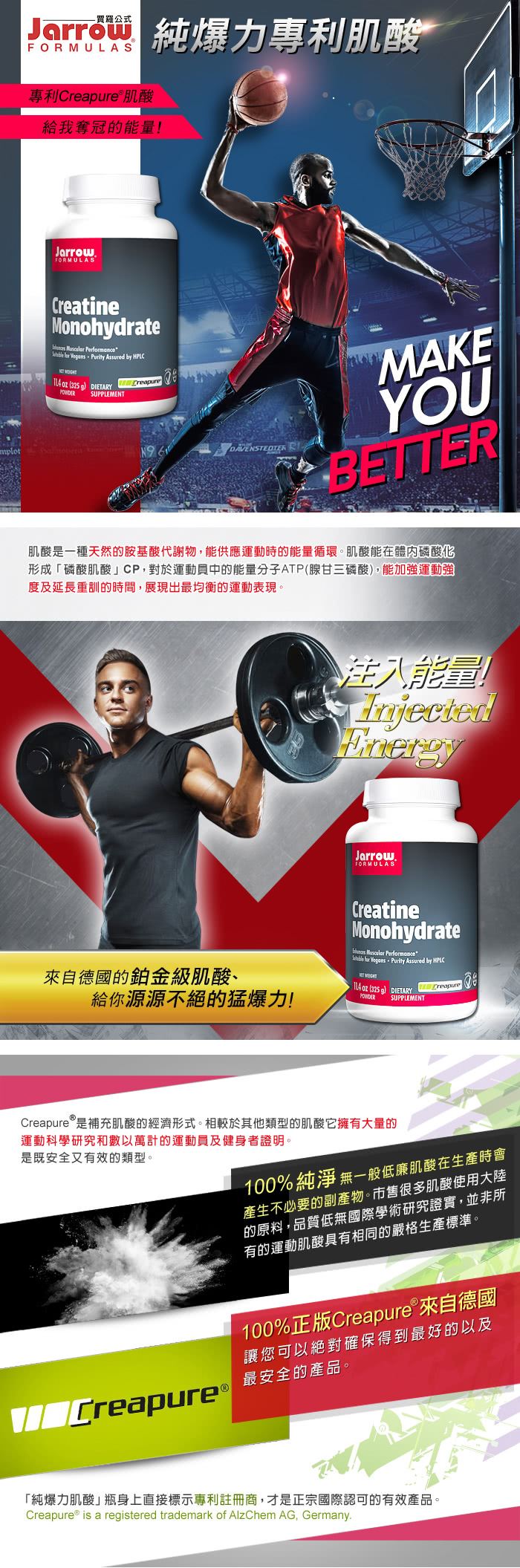 【美國Jarrow賈羅公式】純爆力專利肌酸