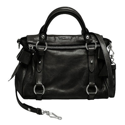 推薦分享MIU MIU 經典VITELLO LUX小牛皮蝴蝶結可折手提-斜背包(黑)RT0438-NERO