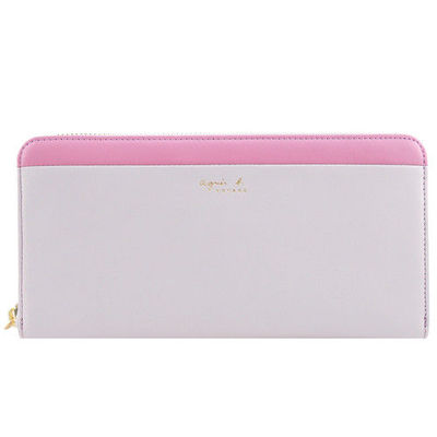 分享比價agnes b. VOYAGE 燙金logo雙色皮革拉鍊長夾(灰粉)