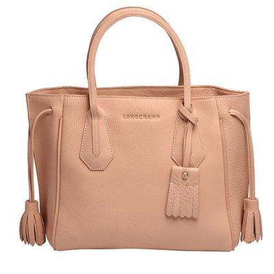 今天要介紹和推薦這款好東西 LONGCHAMP 經典Penelope系列飛馬LOGO牛皮流蘇手提包(小-灰米色)