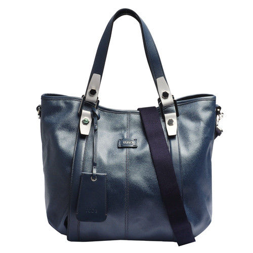 今天要介紹和推薦這款好東西 TOD’S G-Line金屬LOGO小牛皮飾邊帆布吊牌造型手提/斜背包(小-藍X灰)