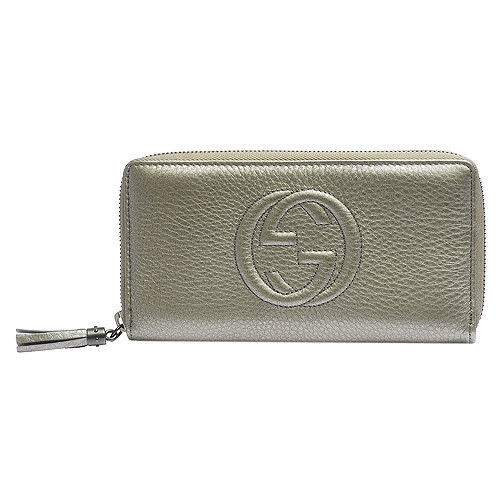今天要介紹和推薦這款好東西 GUCCI SOHO系列大LOGO小牛皮流蘇吊飾拉鍊長夾(古銅灰)