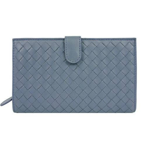 商品訊息描述: BOTTEGA VENETA 手工編織小羊皮釦式長夾(灰藍)