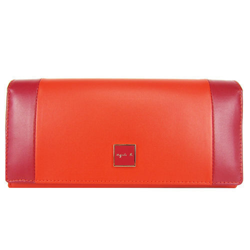 agnes b.方牌logo雙色皮革翻釦長夾(橘紅)最近好多詢問哪裡買最便宜