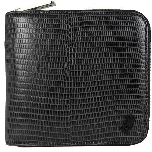 商品訊息描述: agnes b. 仿蜥蜴壓紋皮革拉鍊短夾(黑)