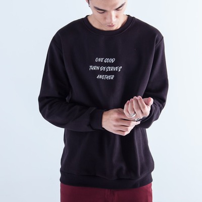 【本周最新折扣】質感草寫標語刷毛長T(黑色) 298 上班族省錢大作戰超值推薦