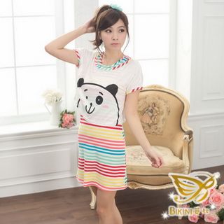 線上週年慶-【Sexy up】可愛小熊 棉質一件式睡衣(繽紛條紋) 分享文