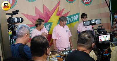 現場《週末最強大》的攝影師肩上的攝影機,貼著胡瓜另個節目《綜藝大集合》的貼紙,相當有趣。(圖/本刊攝影組)補財庫三司財庫官廟短暫休息後,團隊又馬不停蹄趕往新北市新莊區五股黃昏市場繼續錄影,不意外的現場照樣擠滿婆媽粉絲,可見3人吸粉魅力驚人。過程中一開始是胡瓜主持,接著由歐漢聲站到C位掌廚。此外,現場還出現有趣畫面,只見攝影師肩上的攝影機仍貼著《綜藝大集合》的貼紙,而背板與調味瓶上則印著新節目名稱,差點就讓現場粉絲「瓜哥兩節目忙到分不清」。