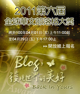 2011『第六屆-全球華文部落格大獎』線上熱烈報名中!!第六屆「全球華文部落格大獎」活動自04/01開放報名起...