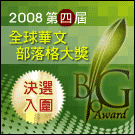 親愛的會員:2008第四屆全球華文部落格大獎的決選名單已經出爐,經過激烈競爭,有5位台長殺出重圍,進入決選名...