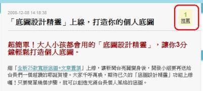 每當你在新聞台看到了一篇好文章,是不是很希望能推薦給大家知道呢?新聞台推出了「文章推薦」功能,讓大家可以推薦自己喜歡的文章,使優質好文可以有更多的曝光機會,還可以看看有哪些人推薦過這篇文章,藉此找到更...
