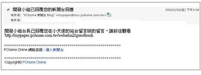 您的心聲開發小組聽到了喔,現在,只要是到文章回應或是留言版留言,只要版主回覆了,我們都會馬上、即時、第一時間的發mail
