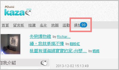 原本在站台右上方的個人管理區,一樣有顯示未讀數字。