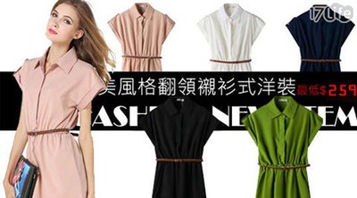 【超人氣商品】歐美風格多尺碼翻領襯衫式洋裝(附腰帶) 熱銷產品特價產品