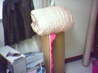 如圖:我室友很喜歡來我房間趴在我那軟軟的棉被上..樣子很可愛喔..只是我沒辦法把他拍進來..只能拍我的棉被..畫面只能由你自己去想像囉!