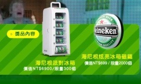 海尼根冰箱好酷我和寶鼻好想要豁出去的買了兩箱48張發票抽獎花了兩千多元擔心著48張會不會太少怕不會中耶 猶豫...