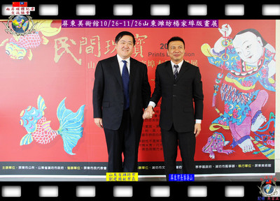 【生活情報-記者吳富正、蔡佳芬/2013.10.26台灣.屏東報導】 屏東美術館10/26至11/26展出「民間瑰寶-山東濰坊楊家埠木版年畫展」,作品有不少是絕版清代古老版畫;屏東市長葉壽山與...