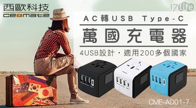 【秋季最新款】【西歐科技】地中海 AC轉USB Type-C 萬國充電器 CME-AD01-7 團購人氣商品送禮酒推薦