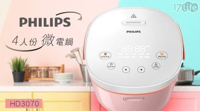 【刷卡購物享回饋】【飛利浦】4人份微電鍋-瑰蜜粉紅 HD3070 活動搶折扣