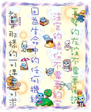 心情陰陰的... 就像今天的天氣一樣 總不知道自己是為了什麼而活 總認為自己是多餘的 是嗎??? 常常讓人生氣 常常被說笨.... 是吧 我真的很笨 所以希望能和你們做永遠的朋友~~...