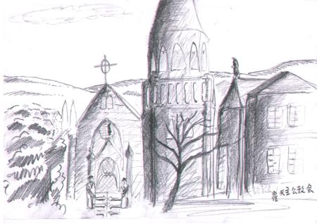 用畫筆記錄著西洋的教堂。