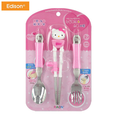 團購【Hello Kitty】3D不鏽鋼湯匙叉子學習筷子(3件組)-免出門