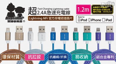 平均每入最低只要299元起(含運)即可購得蘋果認證IPHONE2.4A充電傳輸線(1.2M):1入/2入/4入/8入/16入,顏色:金/銀/藍/綠/紫。