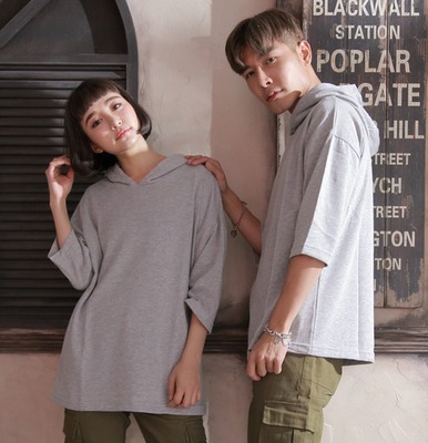 【本季折扣活動】休閒感七分袖落肩帽T(灰色) 201 好物分享享好禮