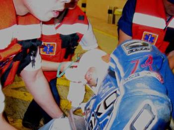 格蘭披治電單車大賽熱身賽發生嚴重意外,法國車手邦浩爾在東方彎失控倒地,連人帶車在賽道滑行二十米,再猛撞向防撞鐵欄,反彈出跑道,當場口鼻吐血昏迷,被送往醫院搶救,三個小時後不治。 戰死沙場法籍車手...