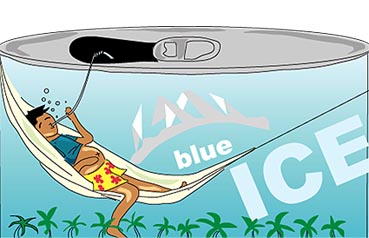 從冰箱拿出這罐整身藍的啤酒,打開的那一瞬間伴隨著「ㄘ」的氣聲的 是我想讓啤酒帶來醉意好上床的期待。啤酒躺在冰箱一陣子了,前陣子7-11如火的展開促銷時,我莫名的被店員愉悅的招呼聲給迷惑了:「進口啤酒現在特價3罐79折!」於是我這個不嗜啤酒的人貪小便宜的買了三罐。一罐美樂,一罐麒麟,正疑惑著要不要拿苦吱吱的海泥根時,就看到了這罐整身藍的Blue Ice Beer。