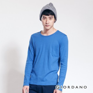 momo購物網 外套 羽絨衣 保暖褲【GIORDANO】男裝純棉素色圓領長袖T恤(67淺沽藍) 商品折扣