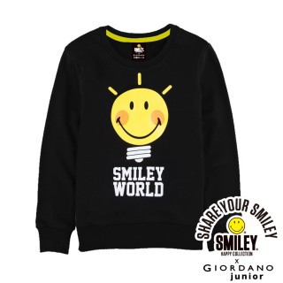 【GIORDANO】童裝SMILEY系列內刷毛圓領TEE(03經典黑)